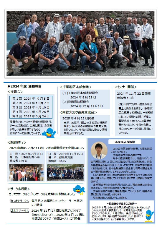 また、3月1日付の人事異動で市原支店長に就任した鎌形(カマガタ)支店長と、友の会新担当の杉谷(スギヤ)も初めて参加させていただき、皆さまと交流させていただきました。今後ともどうぞよろしくお願いいたします。