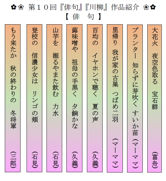 (上 段)パネル写真(泉寿会写真同好会「レンズの道草会員」)・・・通年