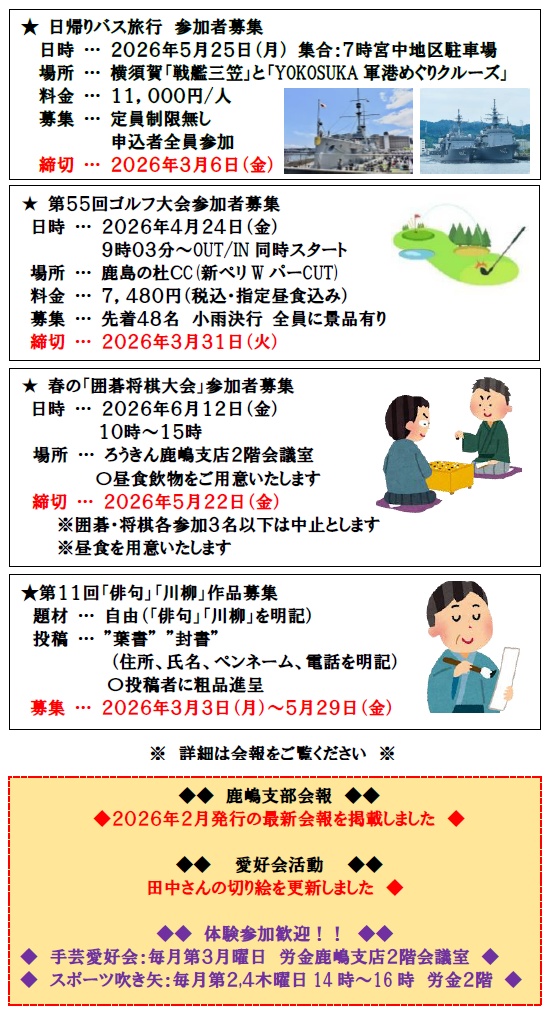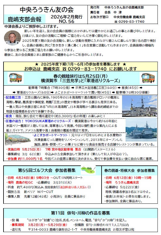 [詳細はHP「中央ろうきん友の会鹿嶋支部第16回総会」でご確認下さい!]