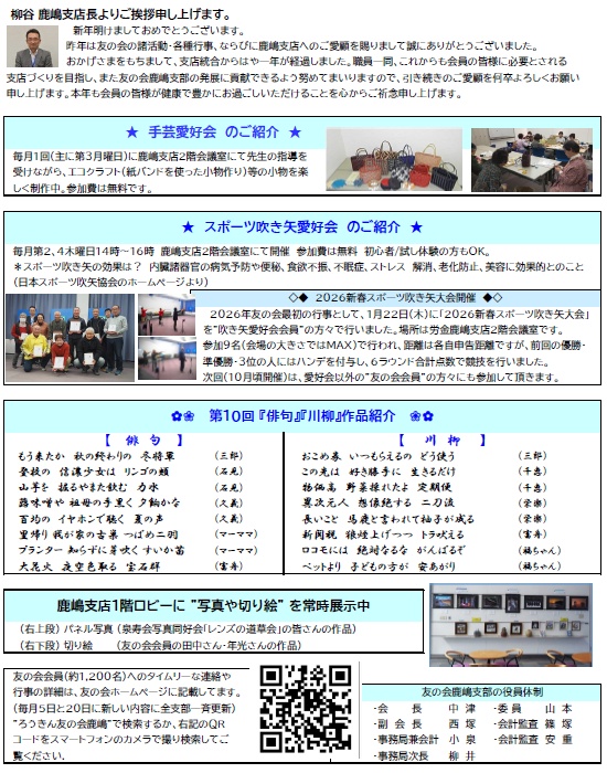 2026年友の会最初の行事として、1月22日(木)に「2026新春スポーツ吹き矢大会」を労金鹿嶋支店2階会議室で開催いたしました。