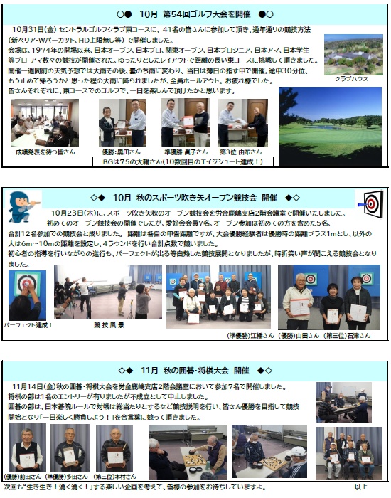 2025年11月14日(金)秋の囲碁・将棋大会を労金鹿嶋支店2階会議室において参加7名で開催しました。