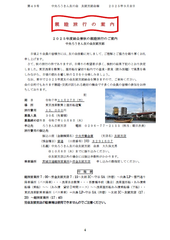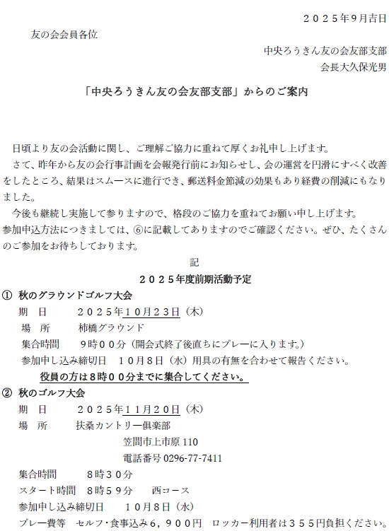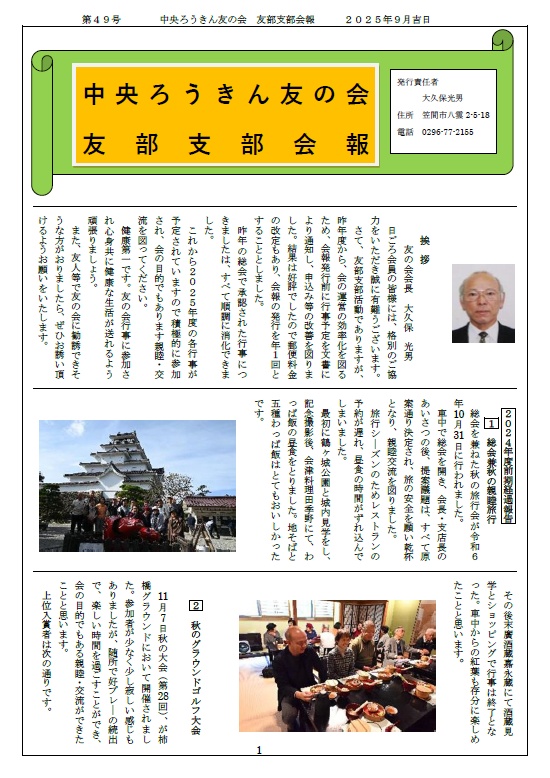 友部支部は、茨城県のほぼ中央に位置し、大きな企業・事業所は少なく、諸団体のOBで構成され、まとまりのある集団組織と自負しているところです。