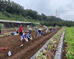 2025年10月16日、「さつまいも・落花生堀り」のイベントを開催しました。当日はあいにくの小雨となりましたが、総勢34名が参加され、皆様大きなさつまいもを見つけては喜んでいる様子でした。落花生堀りでは、根元を引き抜くとたくさんの実がぶら下がっていて、一つでも多くの落花生を取ろうと泥だらけになりながらも必死な様子でした。天気には恵まれませんでしたが、「楽しかった、来年もまた参加したい」との声があり、皆様ご満足頂けたようでした。