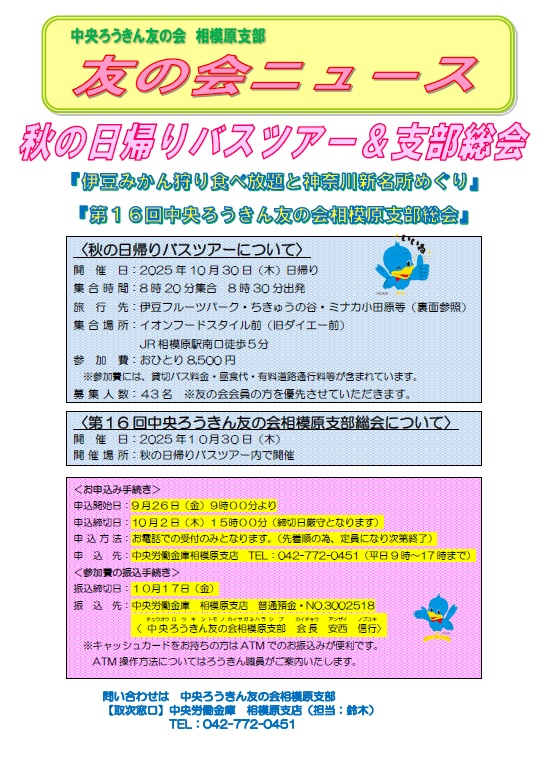詳細、問い合わせにつきましてはろうきん相模原支店までご連絡ください。