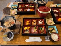 雀のお宿で有名な磯部ガーデンホテルで集合写真を撮り、昼食は沢山の料理にお腹いっぱいに・・・なりました。