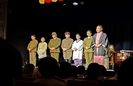 ・太平洋戦争が長引く中時節柄演じるべきでない落語を葬り、国策落語を国民の思想動員に一役かっていた時代に、「笑いたい」と言う人間の当たり前の感情まで戦争に利用された歴史に向き合いながら、日々を明るくたくましく生き抜く噺家やその周りの人々の姿を演じた公演でした。演目終了後、ゲスト出演の林家三平さんの戦時中先代の三平師匠の戦時中の落語についてのトークがありました。