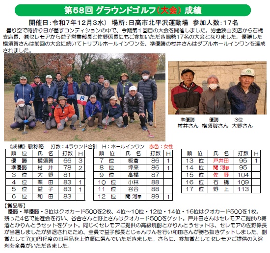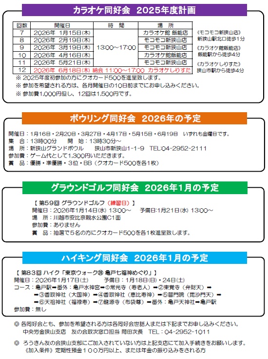 参加を希望される方は中央労金狭山支店ろうきん友の会担当まで一報ください。
