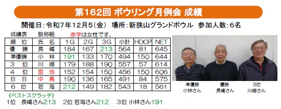 ☆第97回ボウリング同好会月例会(令和元年11月)成績
