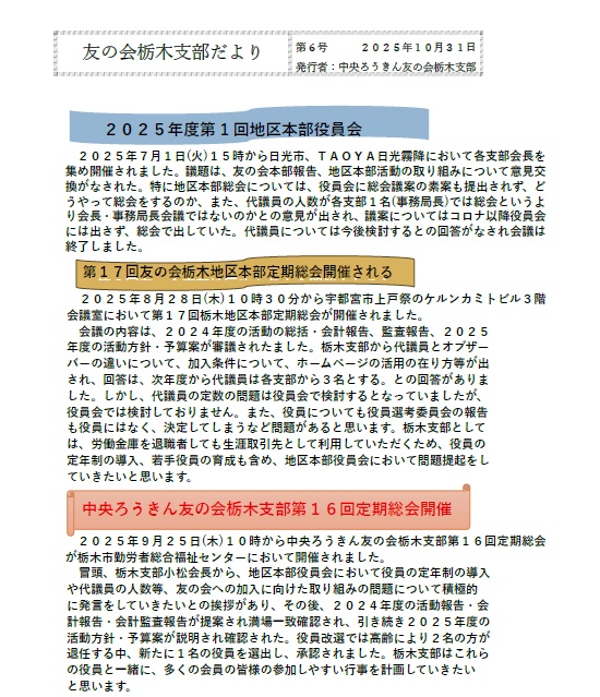 栃木支部の2020年度(2020年7月から2021年6月)第11回総会は、友の会規約の「特別な事情により支部総会の開催が困難な場合は、支部役員会がこれに代わる」を運用して開催しました。