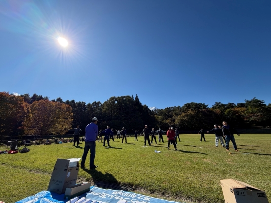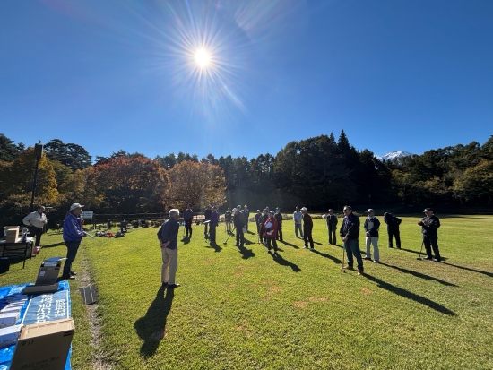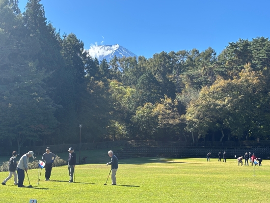 雲ひとつない青空の下、久しぶりに雪化粧をした顔を見せた富士山のふもと、富士パインズパークに23名が令和7年10月28日(火)集い、富士吉田支部秋のグラウンド・ゴルフ大会が開催された。