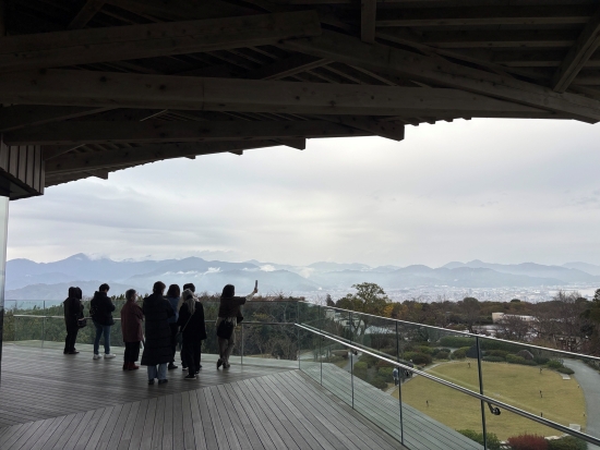 さかなセンターでどっさり買いこんだお土産を積んだバスは、駿河湾と富士の展望を求めて日本平夢テラスに向かう。あいにくの小雨で眺望はお預けとなった。