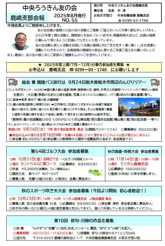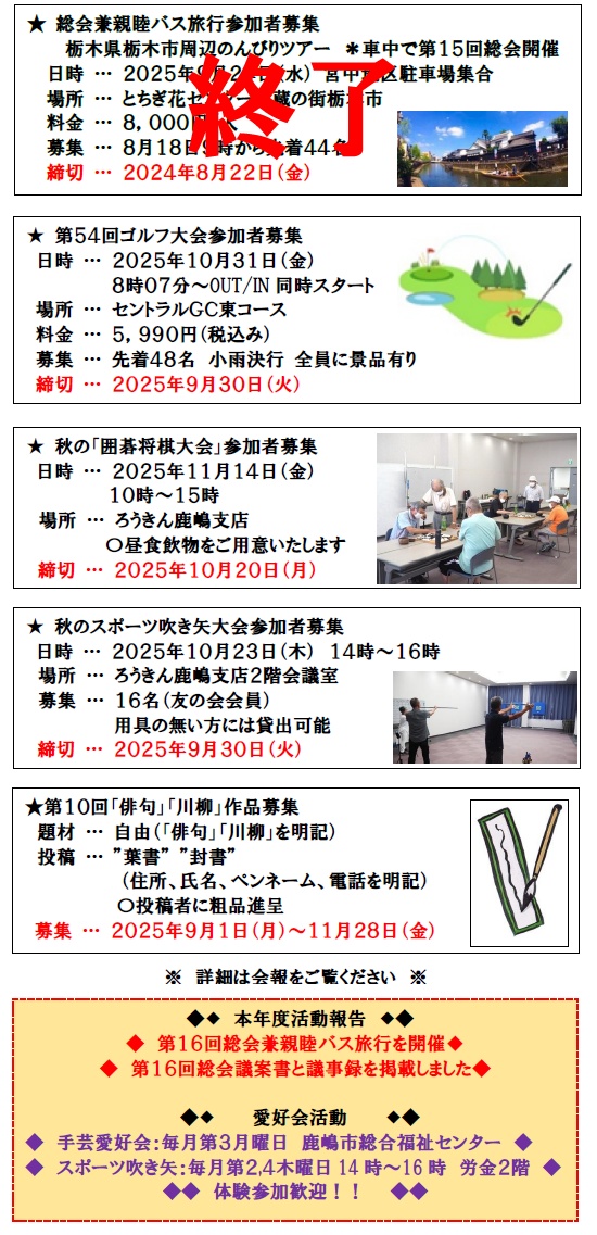 [詳細はHP「中央ろうきん友の会鹿嶋支部第16回総会」でご確認下さい!]