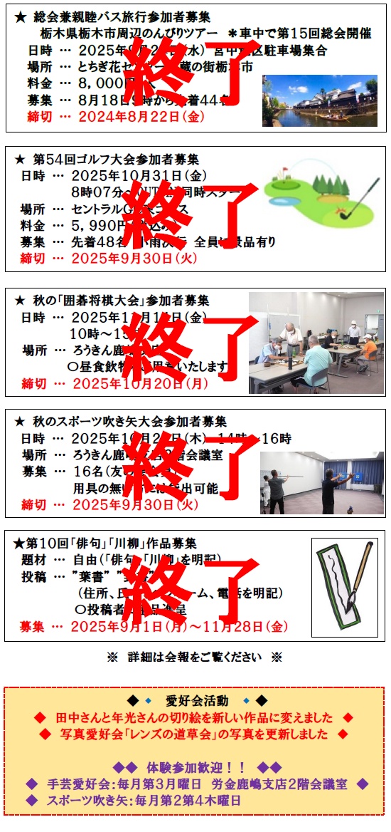 ※愛好会のご入会やお問い合わせは友の会担当者までご連絡ください。