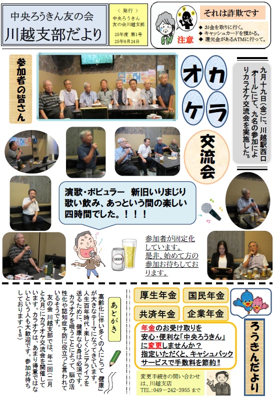 中央ろうきん友の会川越支部の第13回定期総会を、9月30日(木)に東部地区ふれあいセンターにて開催した。