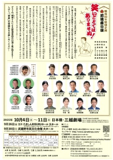 0422-49-0300 前進座(10:00〜17:00 土日祝休み) ※必ず「中央ろうきん友の会会員」の旨、お伝え下さい。 ※グループ観劇のご相談は、担当:村嶋まで。 |